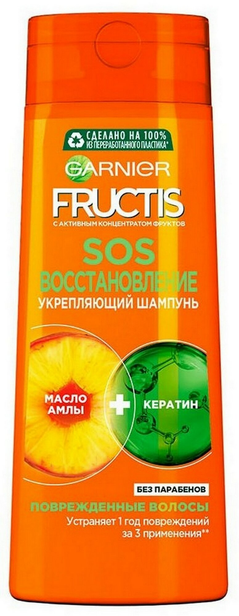 Fructis Шампунь для волос SOS Восстановление, укрепляющий, для секущихся и очень поврежденных волос, с Керафилом и Маслом Амлы, 400 мл