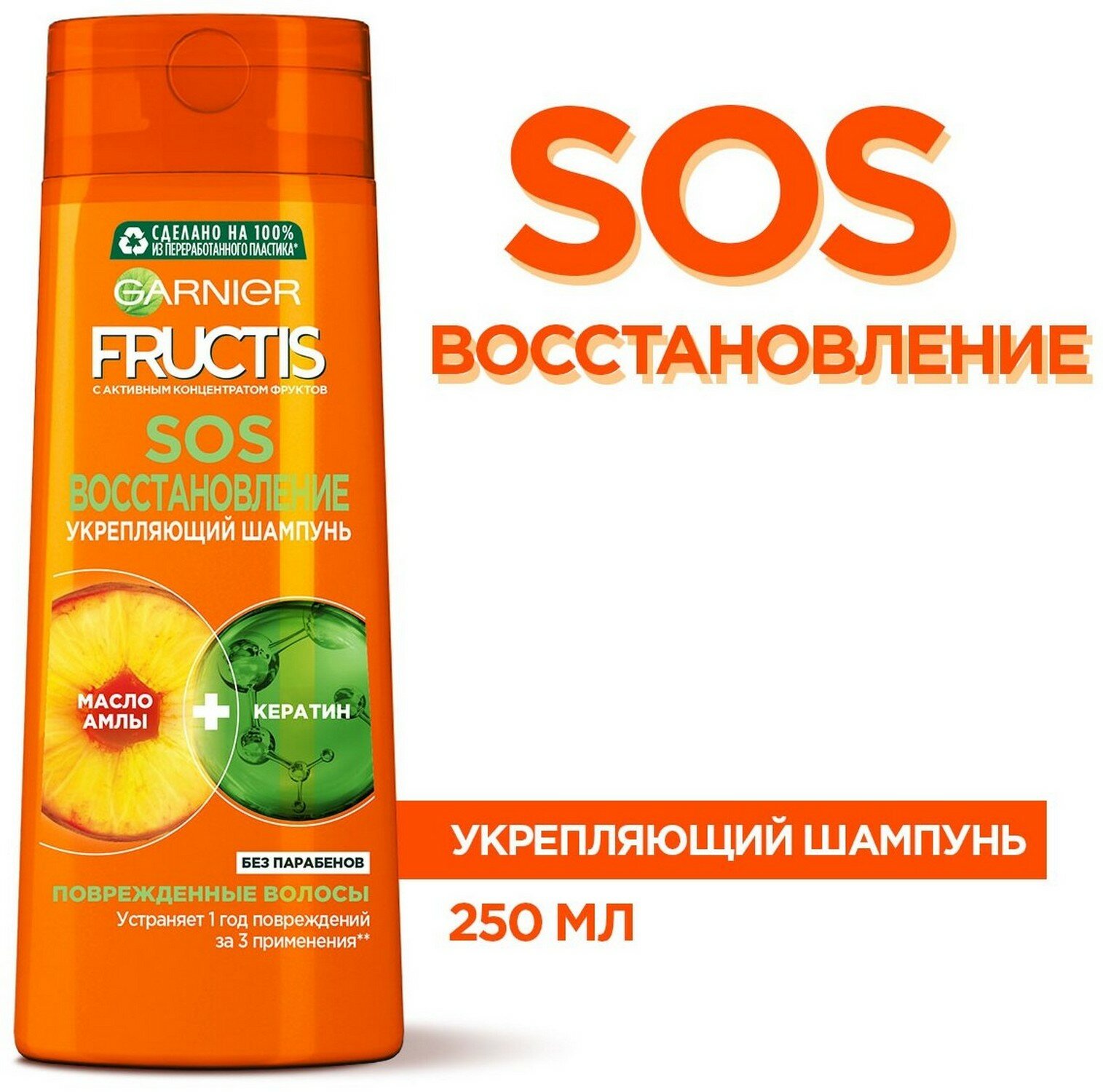 Fructis Шампунь для волос SOS Восстановление, укрепляющий, для секущихся и очень поврежденных волос, с Керафилом и Маслом Амлы, 250 мл