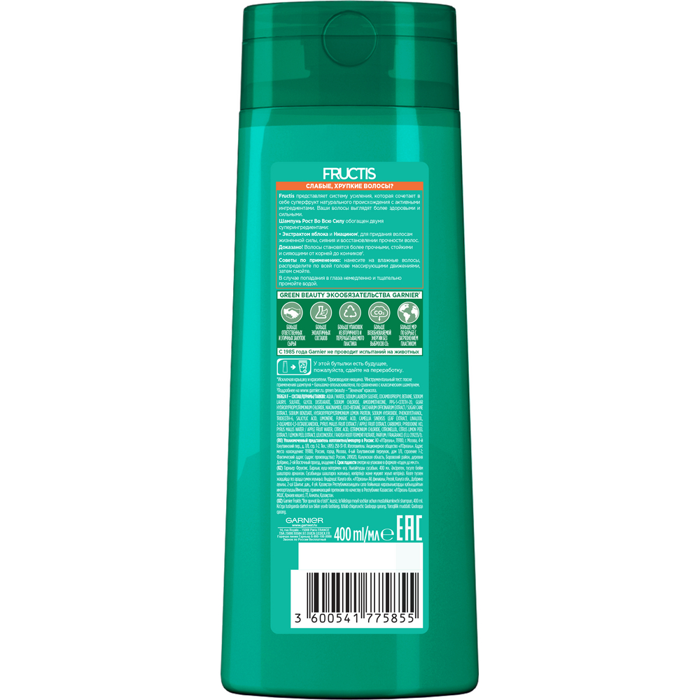 Купить GARNIER Fructis шампунь Рост во всю силу Укрепляющий для ослабленных волос, склонных к выпадению, 400 мл