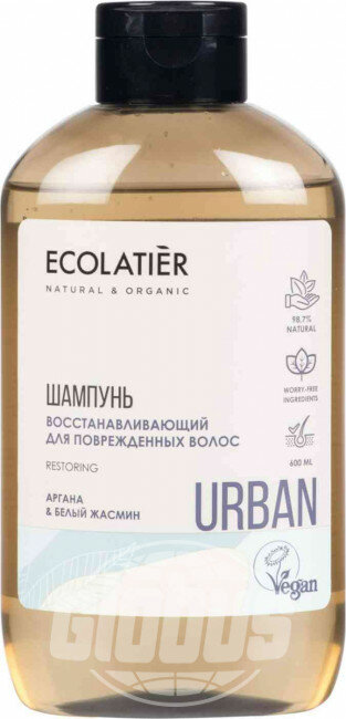 ECOLATIER URBAN Шампунь восстанавливающий для поврежденных волос Аргана и белый жасмин 600 мл