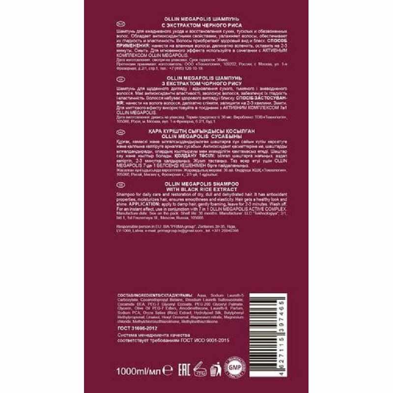 OLLIN / MEGAPOLIS – Шампунь для волос с экстрактом черного риса, 1000 мл