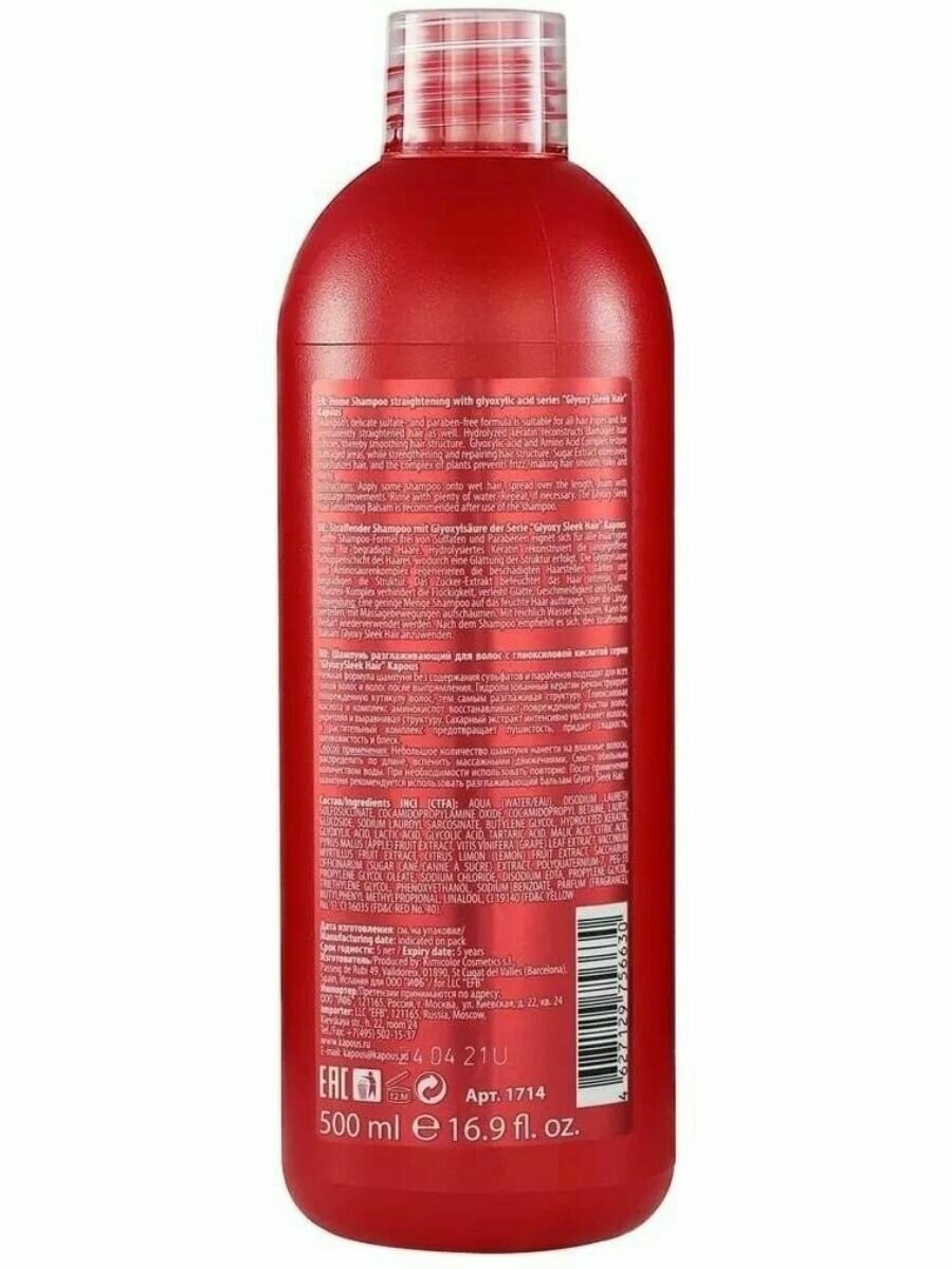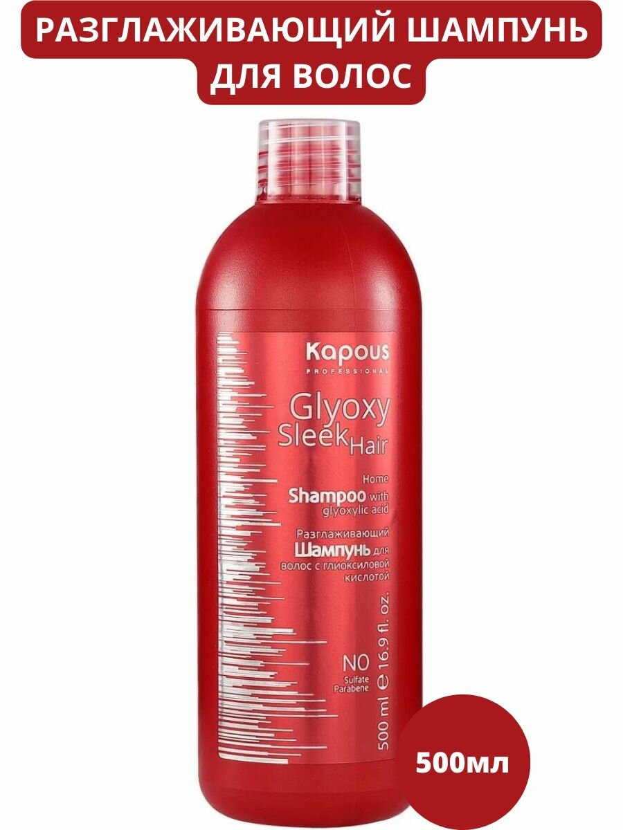 Купить Kapous Professional GlyoxySleek Hair Шампунь для волос, разглаживающий, с глиоксиловой кислотой, 500 мл