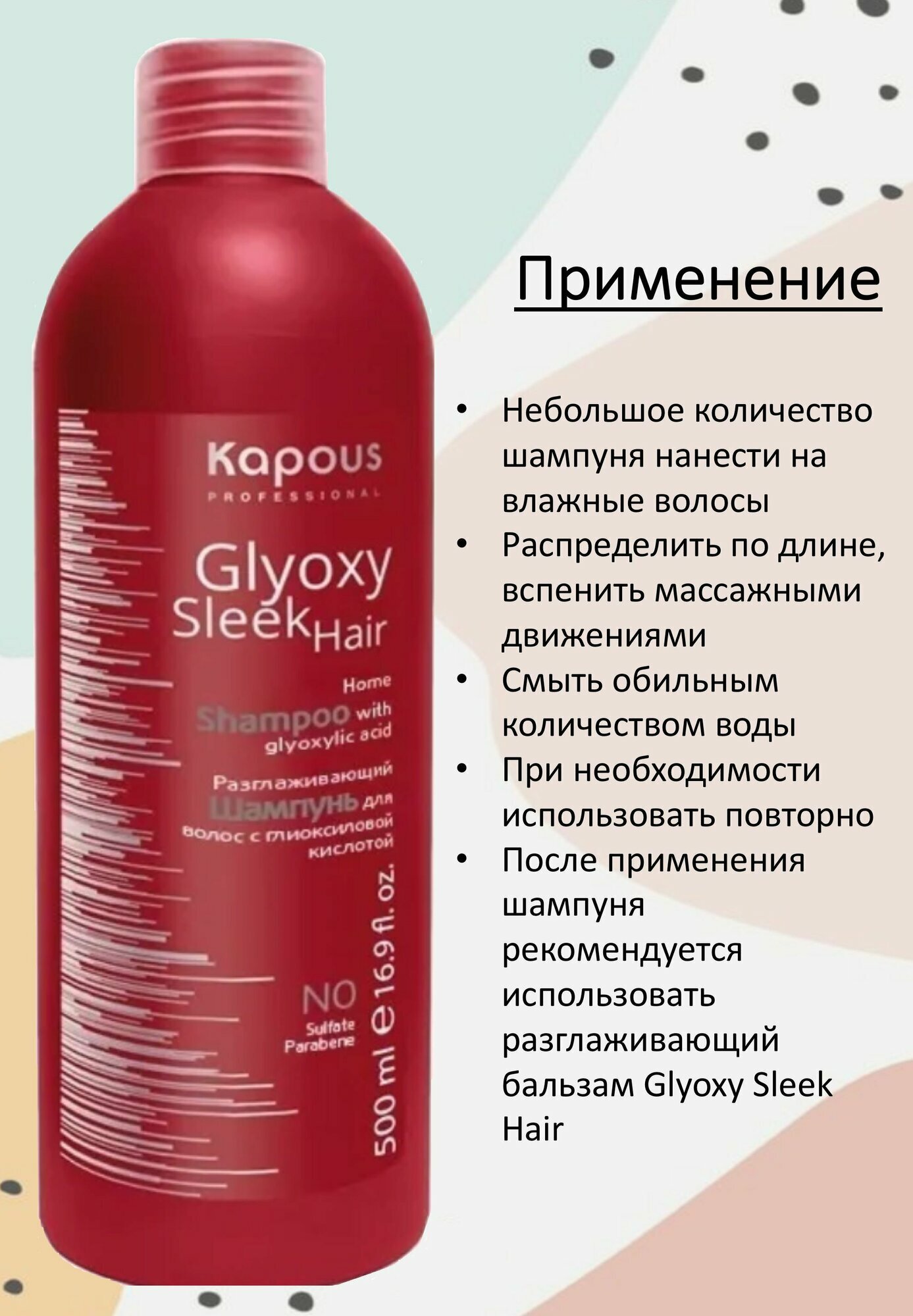 Бессульфатный шампунь разглаживающий с глиоксиловой кислотой Kapous «GlyoxySleek Hair», 500 мл