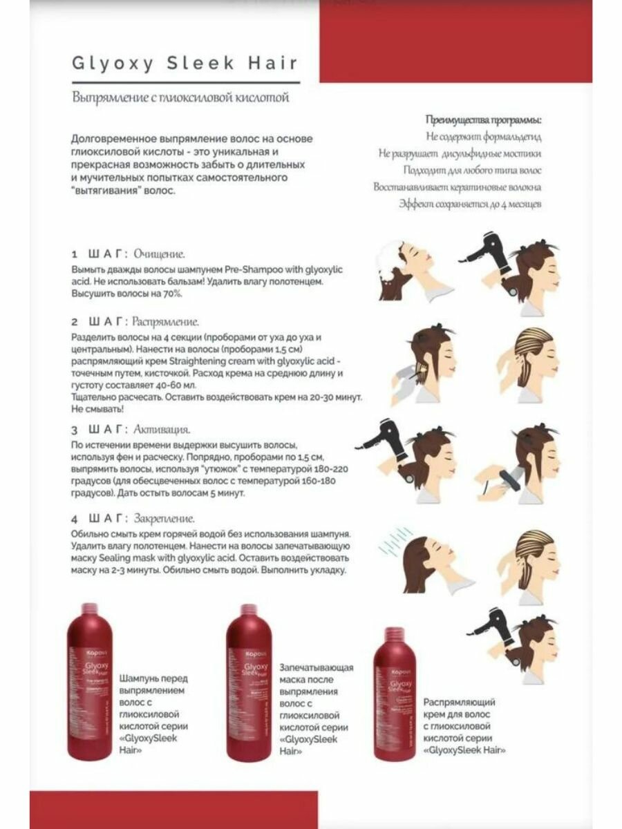 | Активный ингредиент | аминокислоты / бетаин / витамин A / витамины группы B / гиалуроновая кислота / глицерин / кератин / пантенол / протеины |