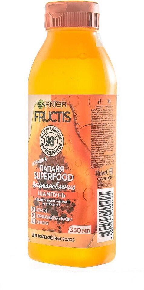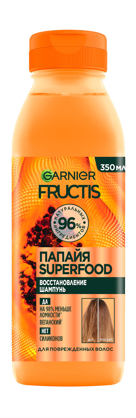 Garnier Fructis шампунь "Папайя Superfood Восстановление" для поврежденных волос, 350 мл