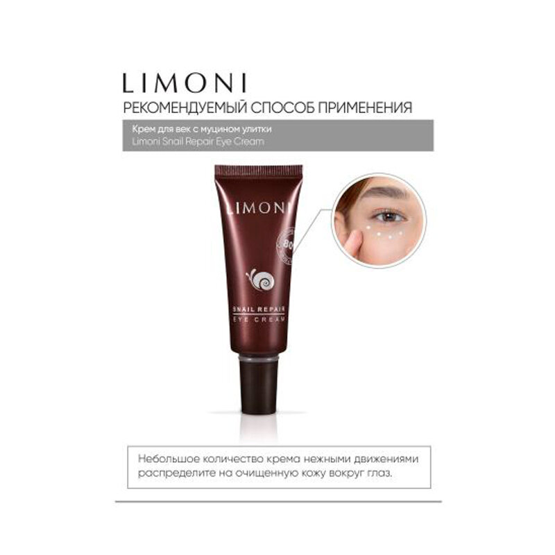LIMONI Крем для век и ухода за кожей вокруг глаз с муцином улитки и гиалуроновой кислотой, Корея 25 мл