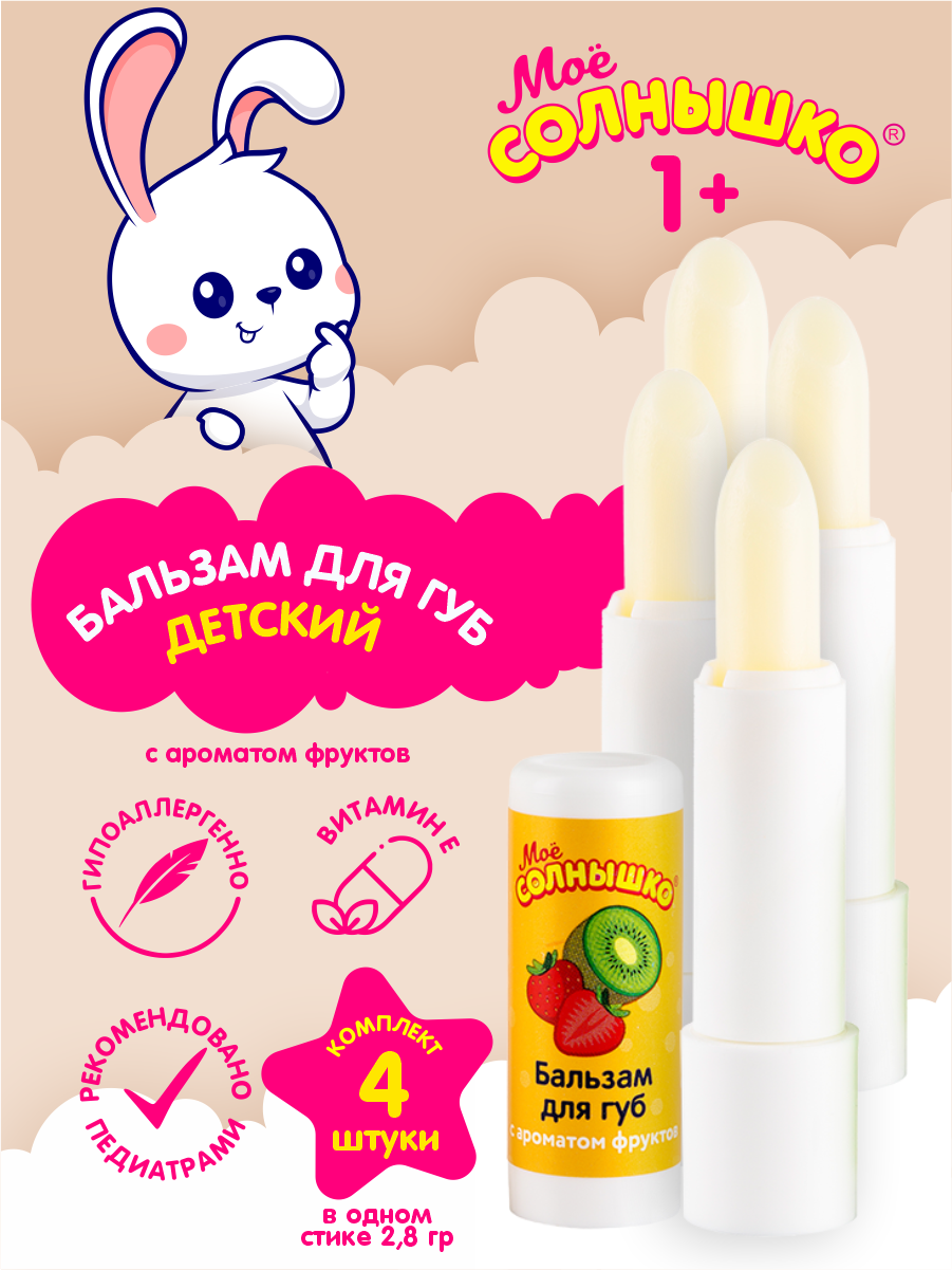 Купить Бальзам для губ детский с ароматом фруктов Мое Солнышко 2,8 гр. х 4 шт.
