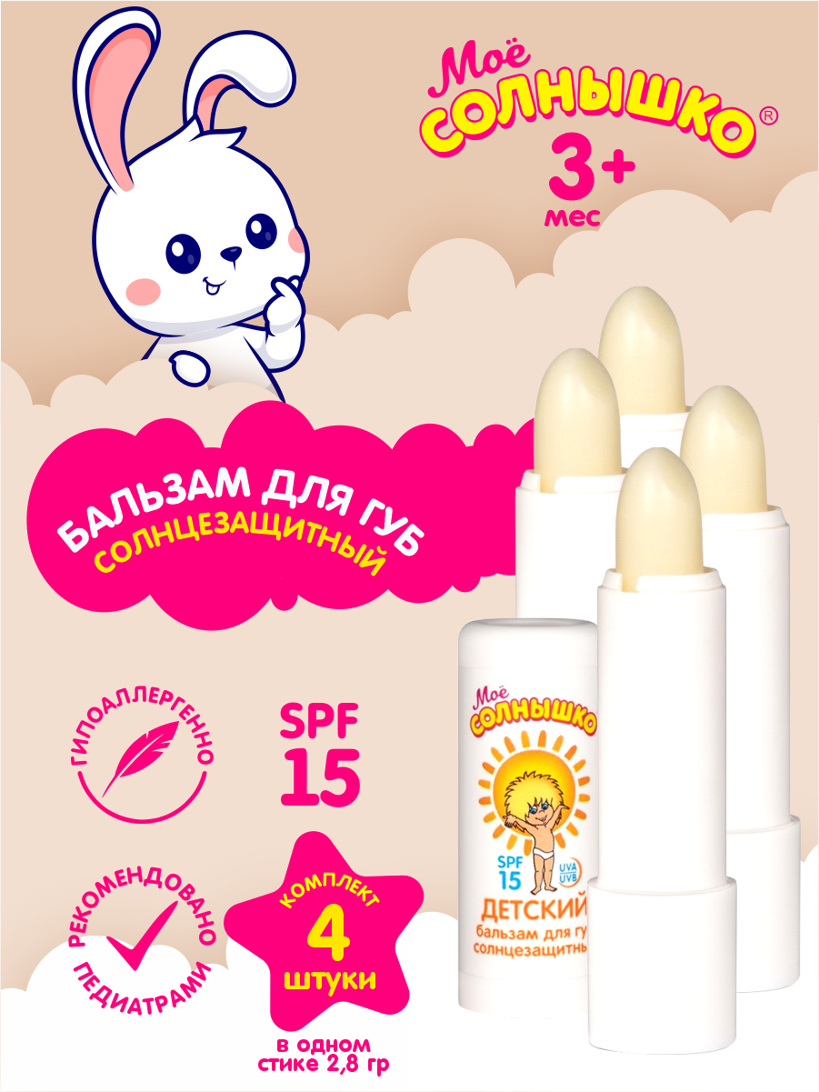 Купить Бальзам для губ детский солнцезащитный Мое Солнышко 2,8 гр. х 4 шт.