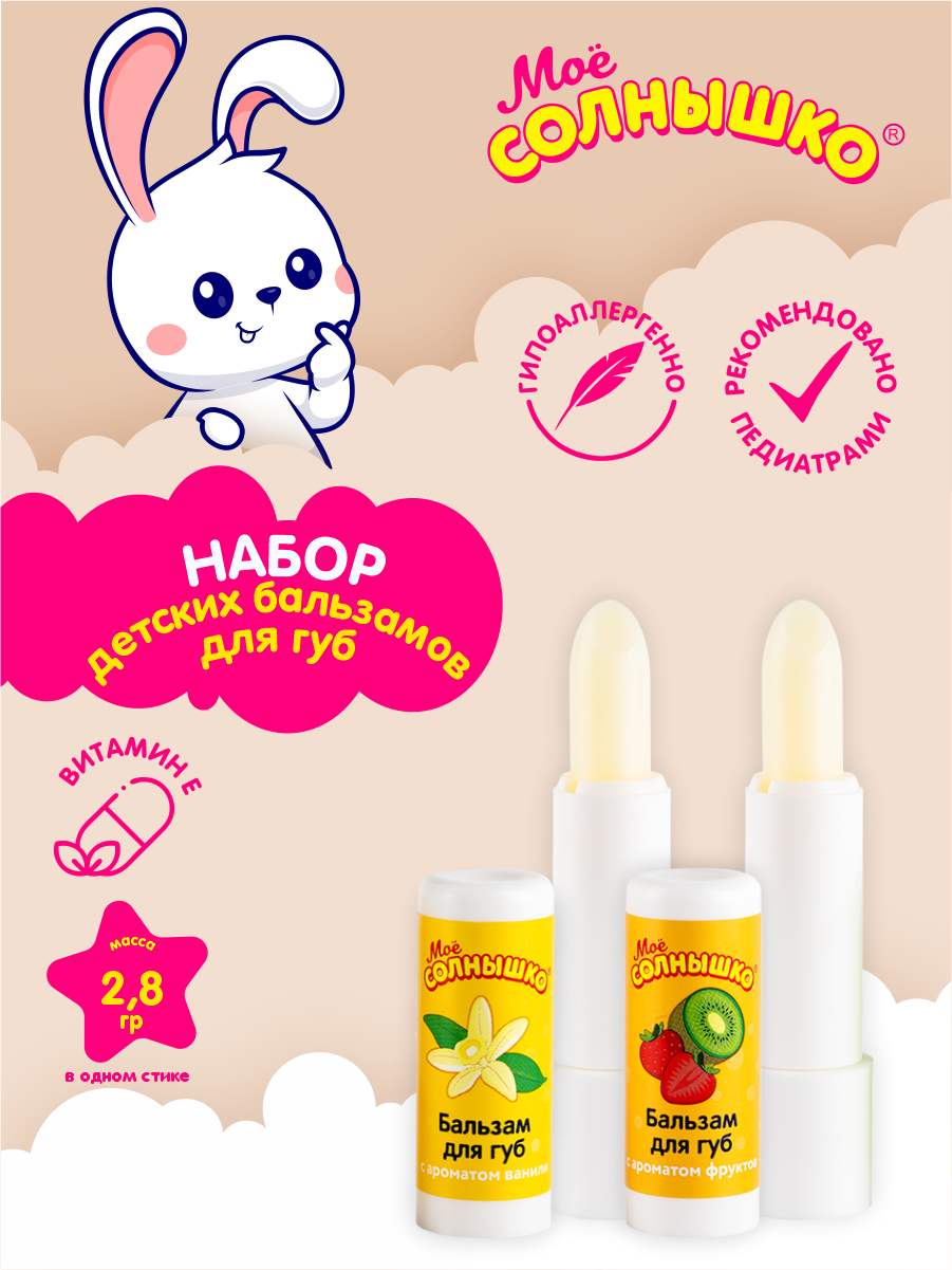 Купить Набор детских бальзамов для губ Моё солнышко 2,8 гр. Ваниль + Фрукты