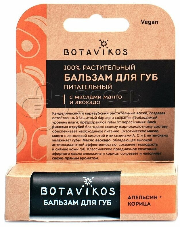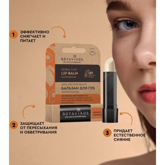 Питательный бальзам для губ Апельсин + корица , 4 гр, BOTAVIKOS интересное:
