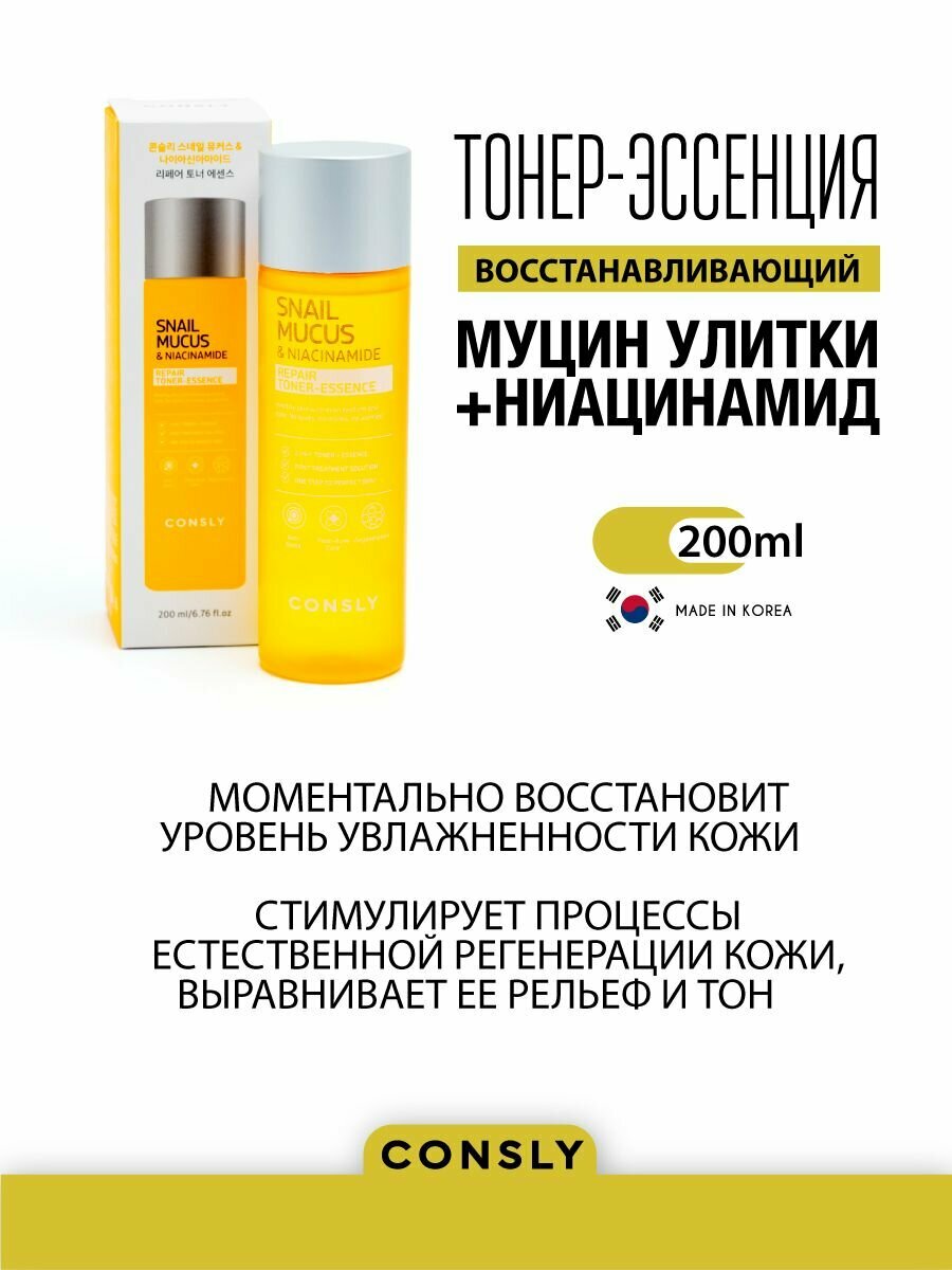 Consly Тонер-эссенция с муцином улитки и ниацинамидом восстанавливающий, 200 мл