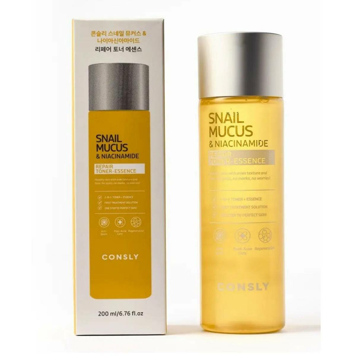 Восстанавливающий тонер-эссенция с муцином улитки и ниацинамидом, для всех типов кожи, 200 мл, Consly