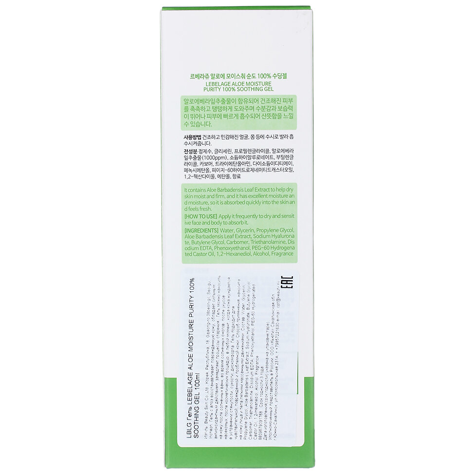 Увлажняющий успокаивающий гель LEBELAGE с экстрактом алоэ, 100 мл 10144538