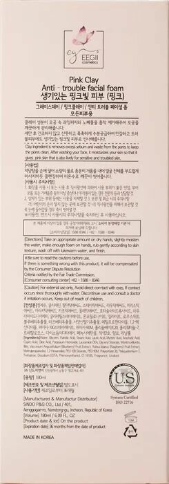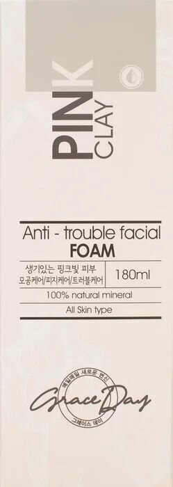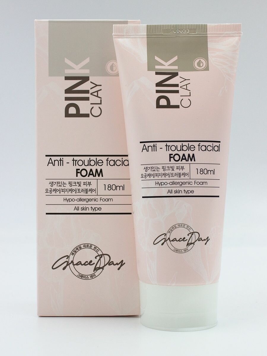Grace Day Пенка для умывания, для снятия остатков макияжа, для ухода за кожей лица, шеи и зоны декольте с розовой глиной, корейская косметика. 180мл
