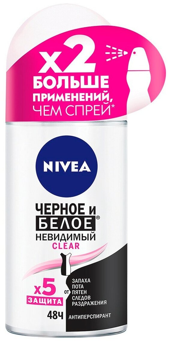 Нивея / Nivea - Дезодорант-антиперспирант шариковый Clear Черное и белое невидимый 50 мл