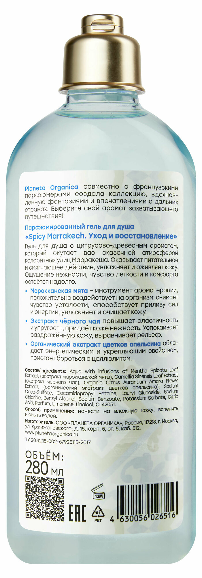 PLANETA ORGANICA Гель для душа Парфюмированный Spicy Marrakech уход и восстановление, 280 мл