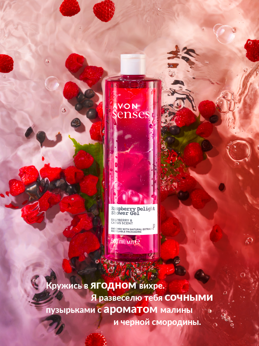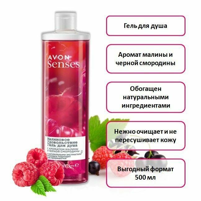 Женский увлажняющий Гель для душа AVON Малиновое удовольствие с ароматом малины и черной смородины 500 мл для чувствительной и сухой кожи