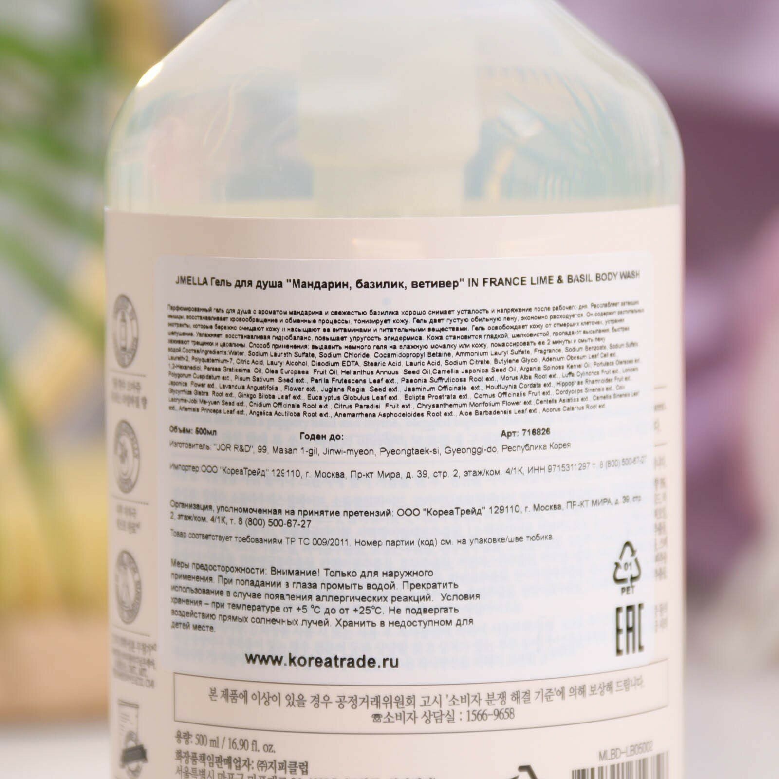 Купить JMELLA IN FRANCE LIME & BASIL BODY WASH Гель для душа "Лайм и базилик" 500мл