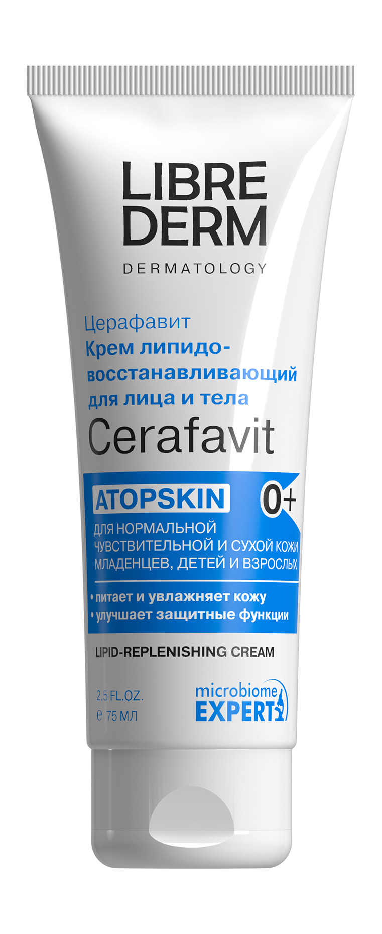Крем липидовосстанавливающий с церамидами и пребиотиком для лица и тела 0+, 75 мл, Librederm