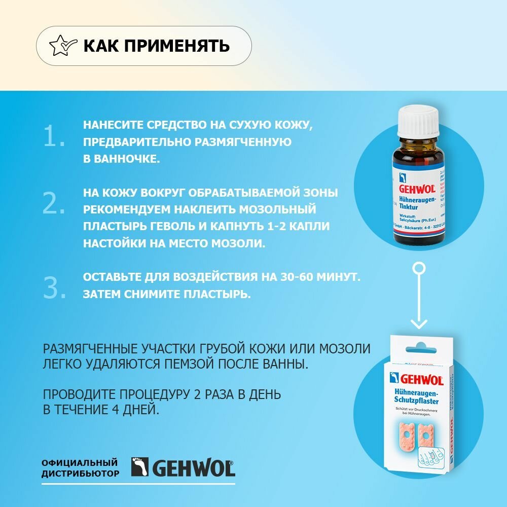 Мозольная настойка для удаления огрубевшей кожи мозолей натоптышей Геволь Gehwol, 15 мл интересное: