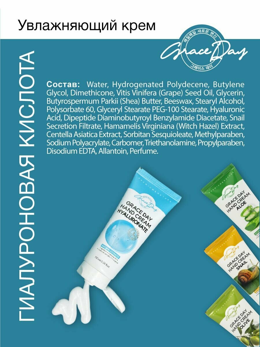 Купить Grace Day Увлажняющий крем для ухода за кожей рук с гиалуроновой кислотой, корейская косметика. 100мл