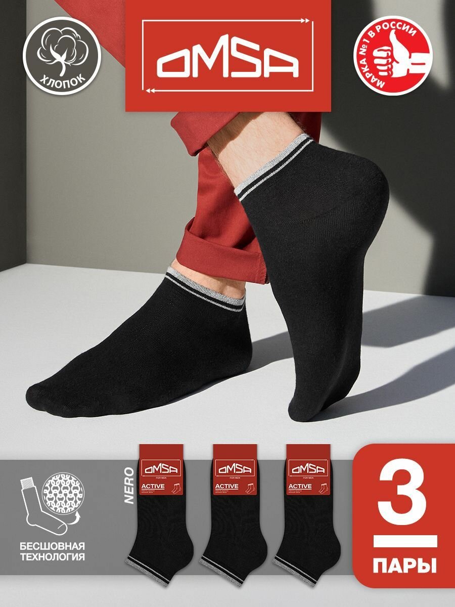 Носки мужские OMSA ACTIVE 105 укороченные, комплект 3 пары, короткие, летние, спортивные, цвет Nero 42-44, набор 3 шт