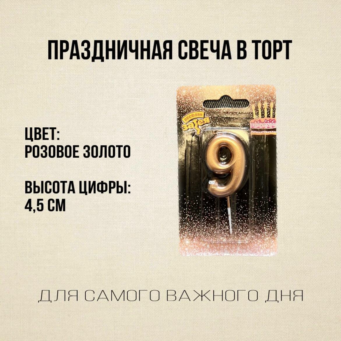Купить Свеча для торта Розовое золото, цифра 9, Бенто торт