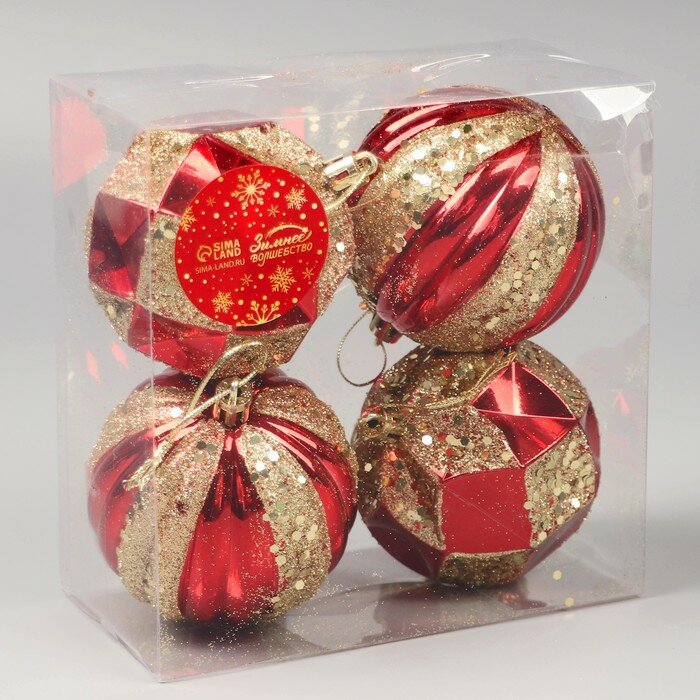 Купить Набор шаров пластик d-8 см, 4 шт "Праздничный блеск" красно-золотой 9510255
