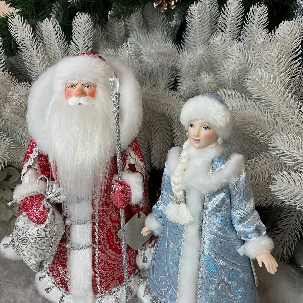 АртМороз Дед мороз и Снегурочка русские 33см; новогодняя игрушка под ёлку; авторская кукла ручной работы; подарок на Новый Год интересное: