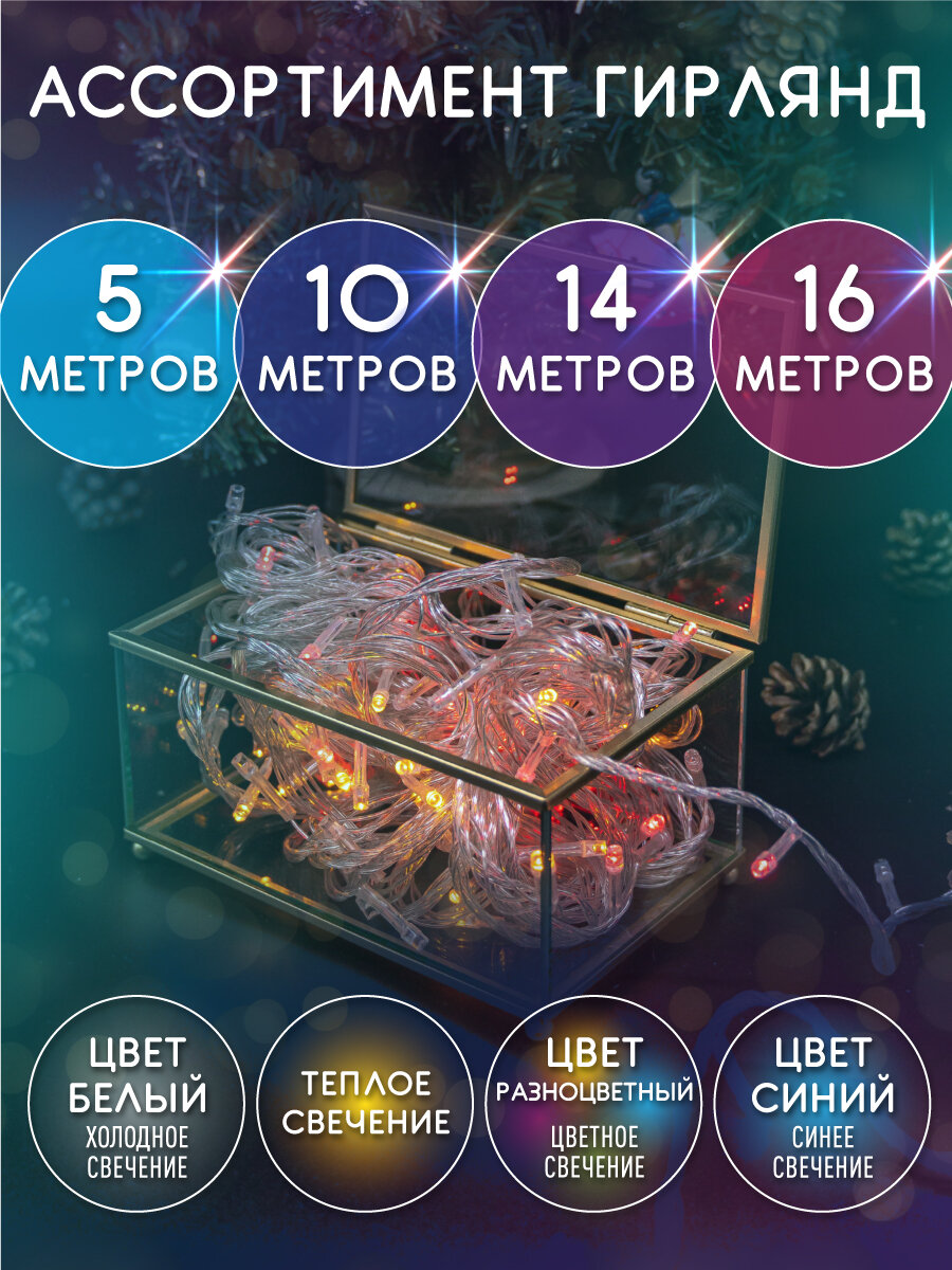 СохранитьНовогодняя гирлянда на елку синяя, 5 м / Гирлянда новогодняя на елку от сети / Гирлянда светодиодная на шторы, на окна интересное: