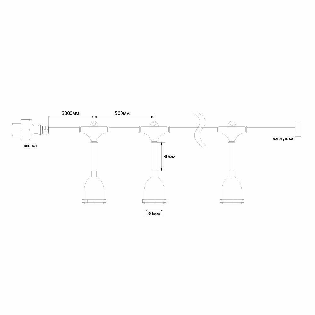 Уличная гирлянда FERON Белт-лайт 20 E27 черная, шаг 50 см, IP 65, 10 м+3 м шнур, CL50-13 29885