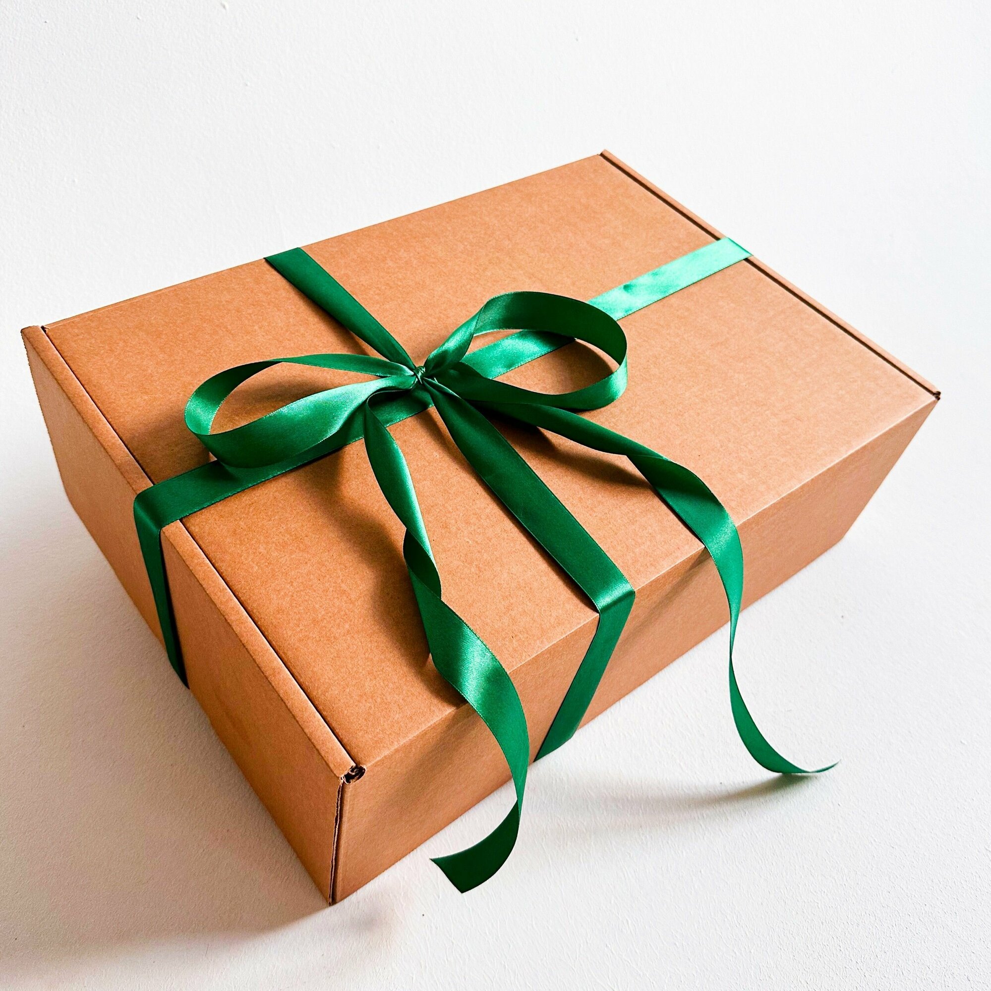 Огромная подарочная коробка GILEV 45х45х20см с зеленой лентой и наполнителем крафт