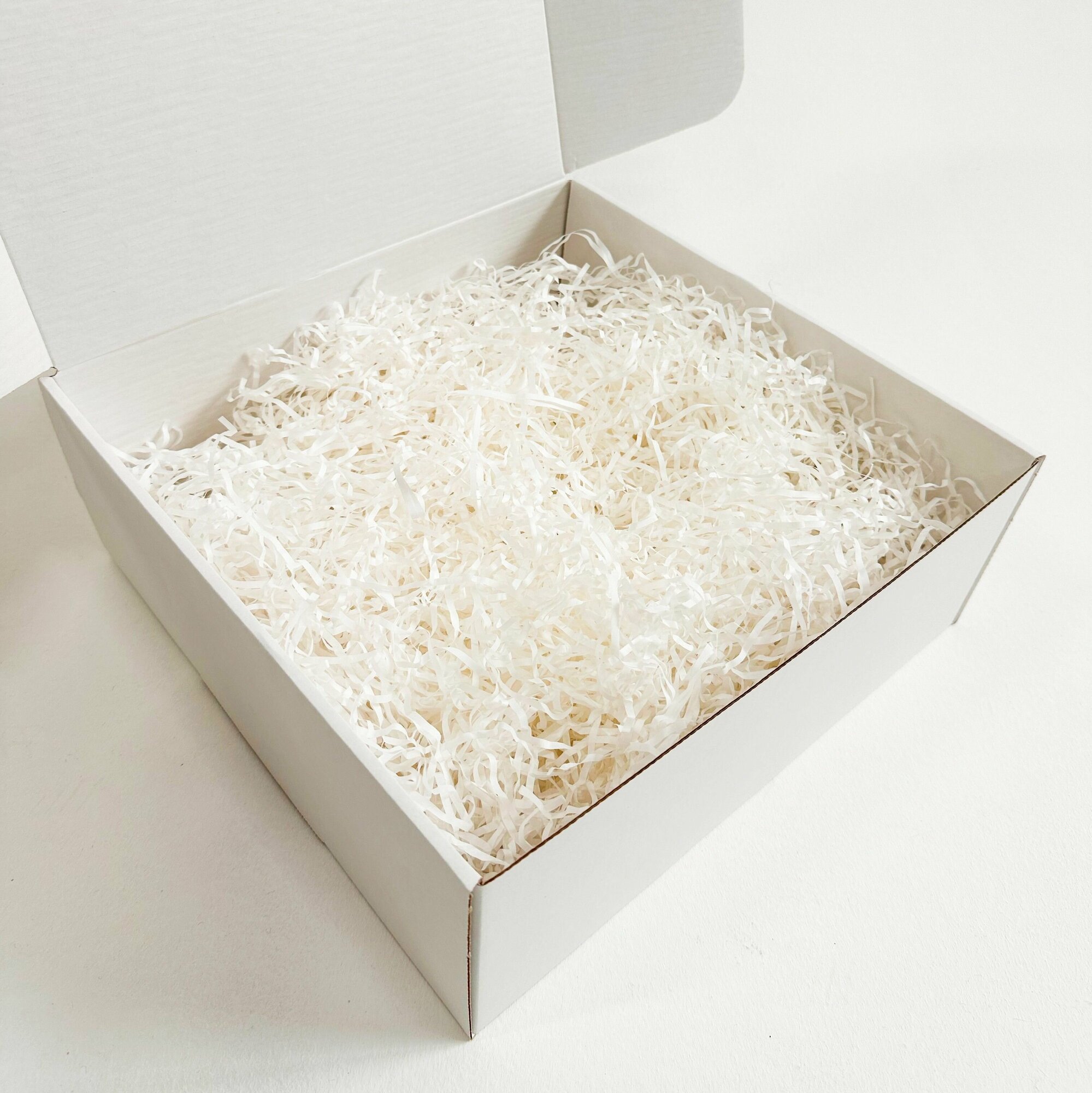 Белая подарочная коробка GILEV 32x32x12см с красной лентой и наполнителем