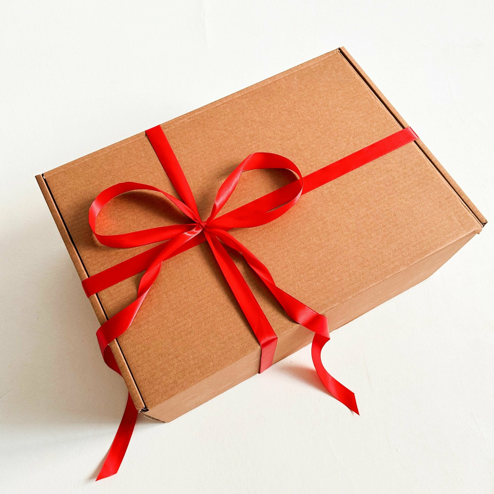 2 штуки - Огромная подарочная коробка GILEV 45х45х20см с красной лентой и наполнителем крафт