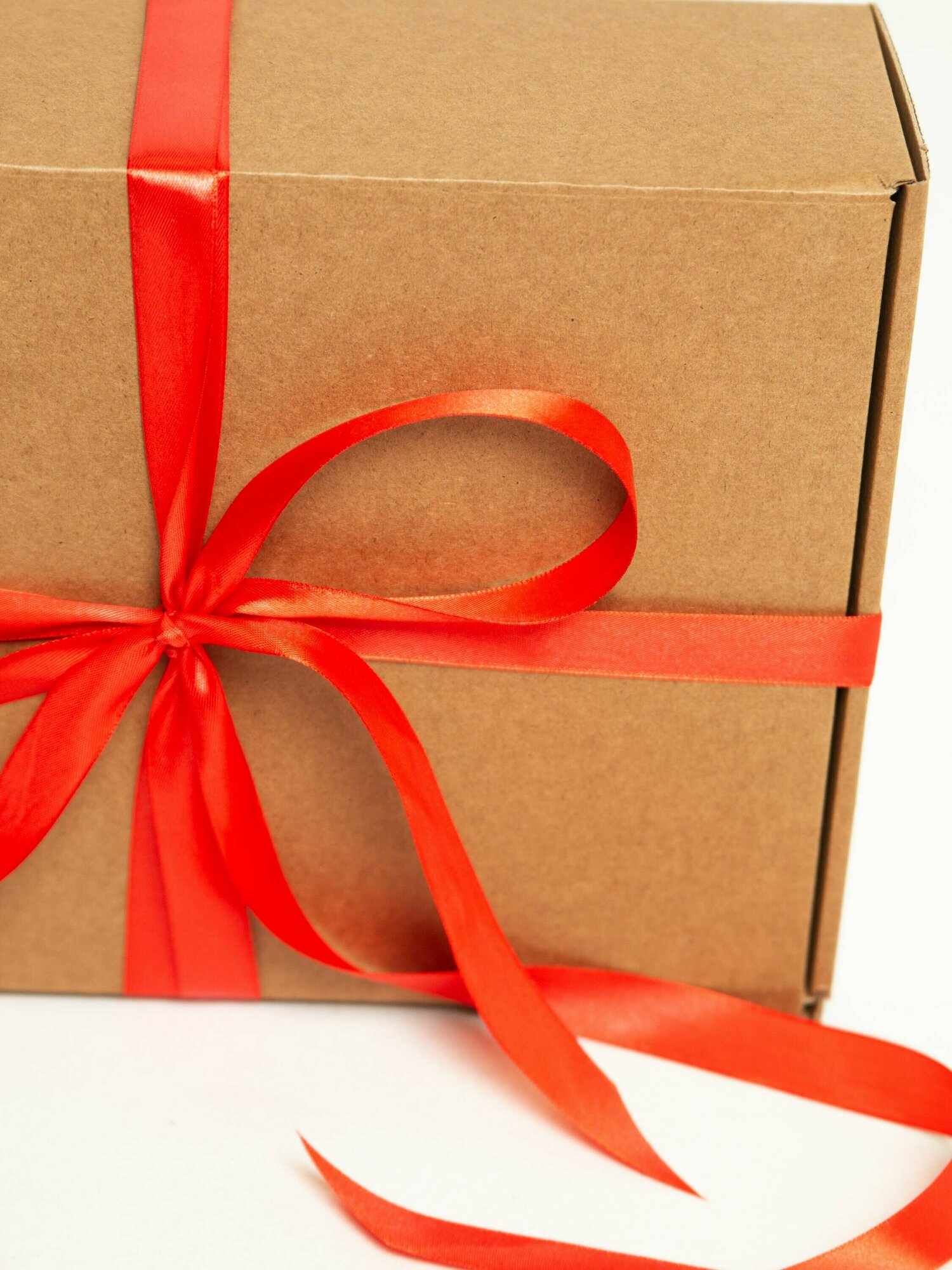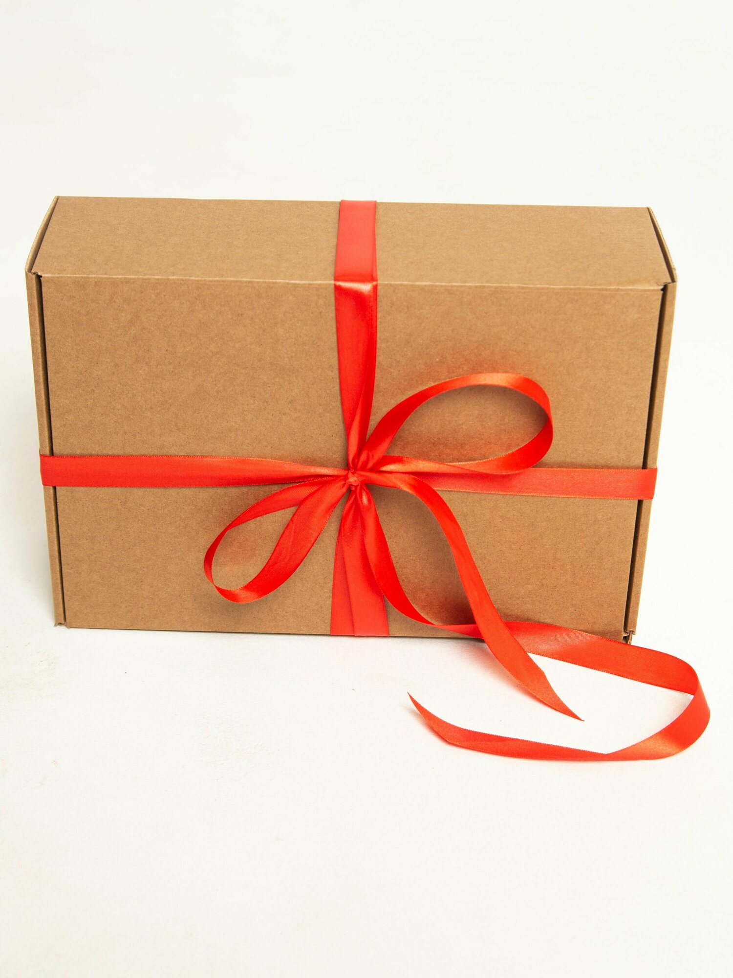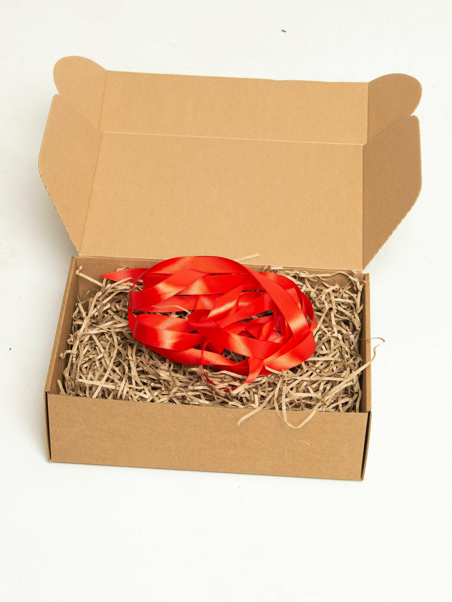 Подарочная коробка GILEV 32x22x10см с наполнителем и красной лентой