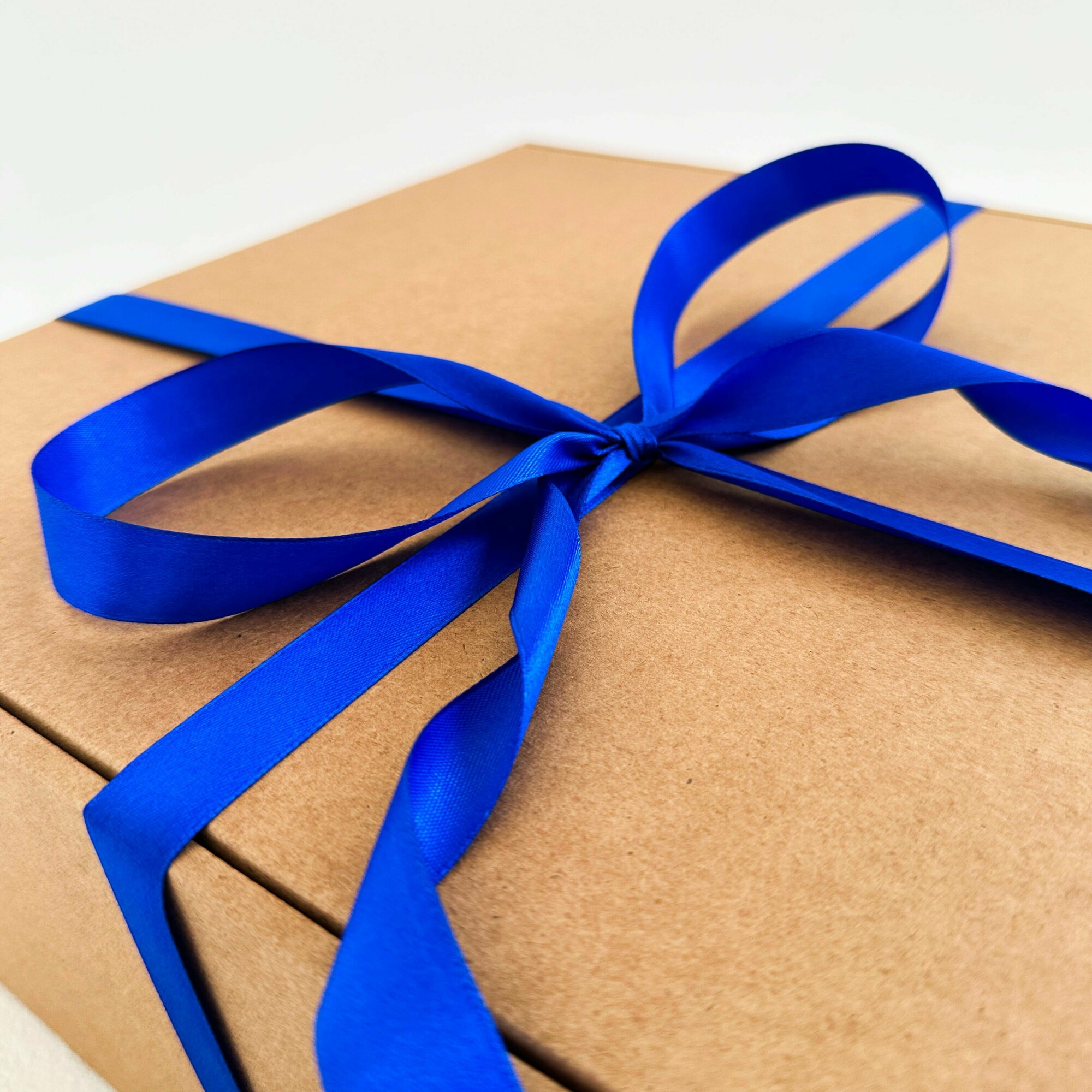 2 штуки - Подарочная коробка GILEV 44x32x15см с синей лентой и наполнителем крафт