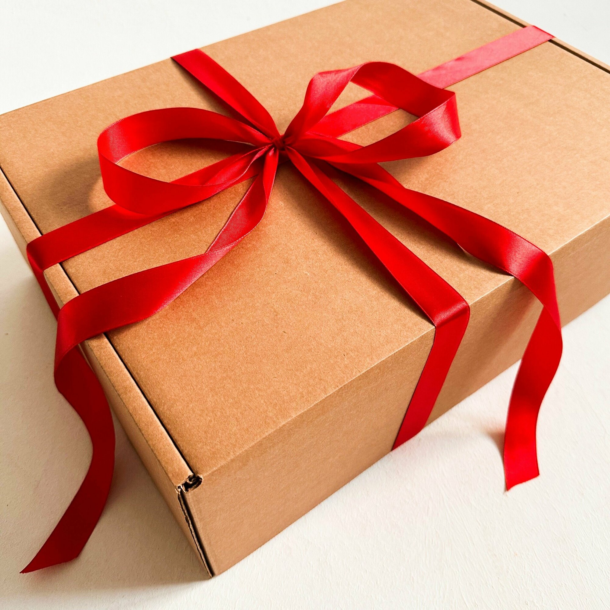 Сохранить2 штуки - Подарочная коробка GILEV 44x32x15см с красной лентой и наполнителем крафт интересное: