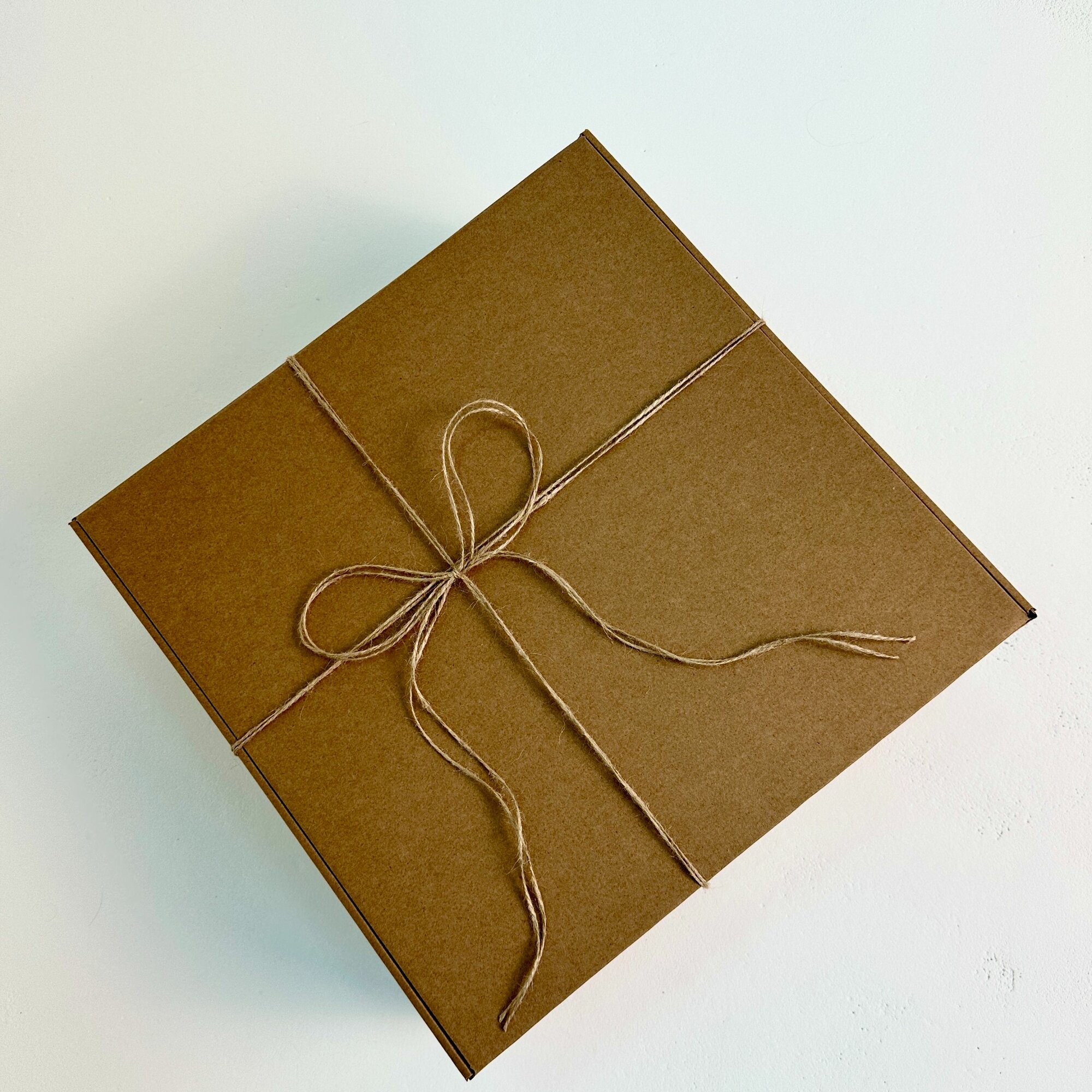 Подарочная коробка GILEV 32x32x12см с наполнителем и коричневой лентой
