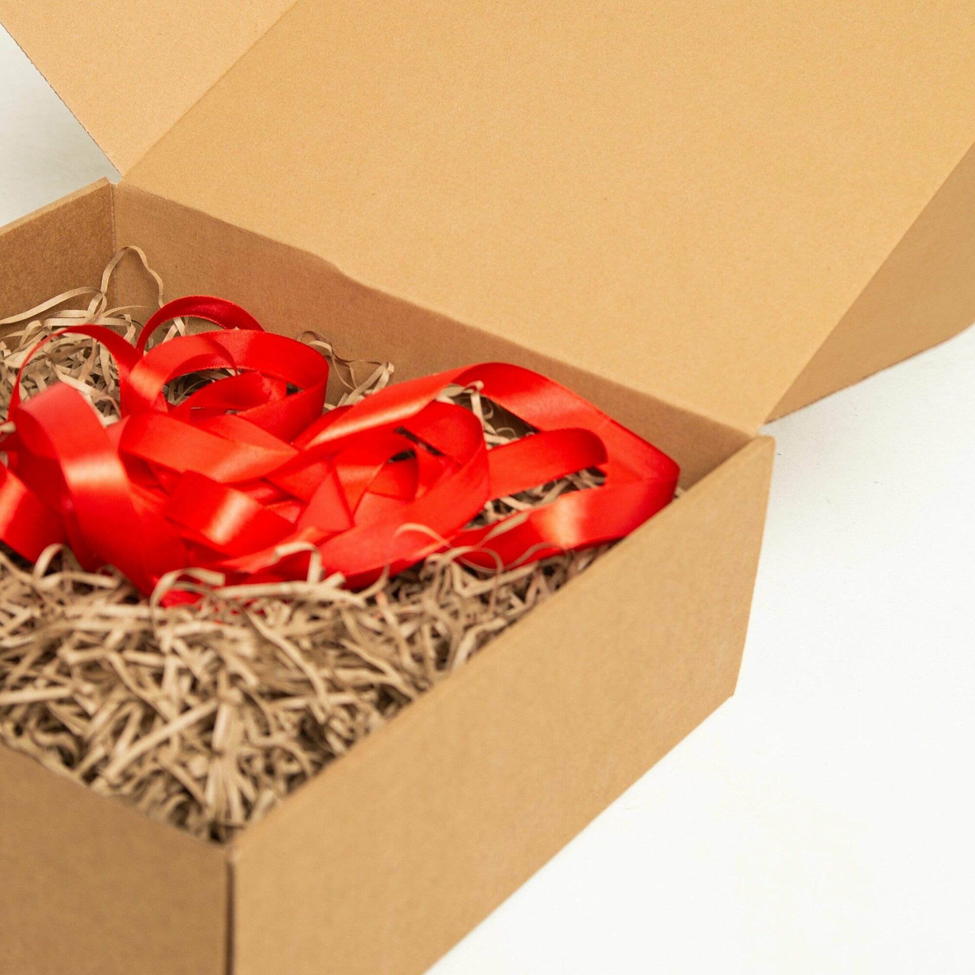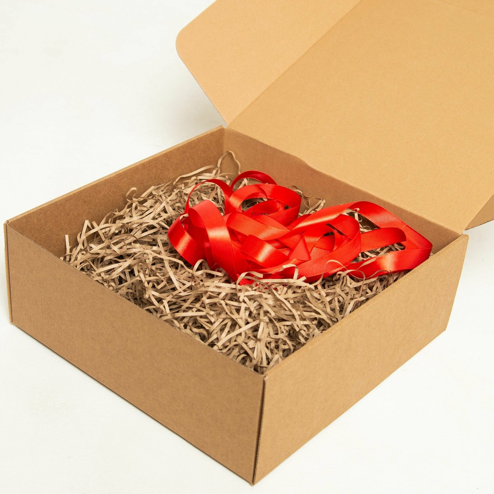Белая подарочная коробка GILEV 32x32x12см с красной лентой и наполнителем