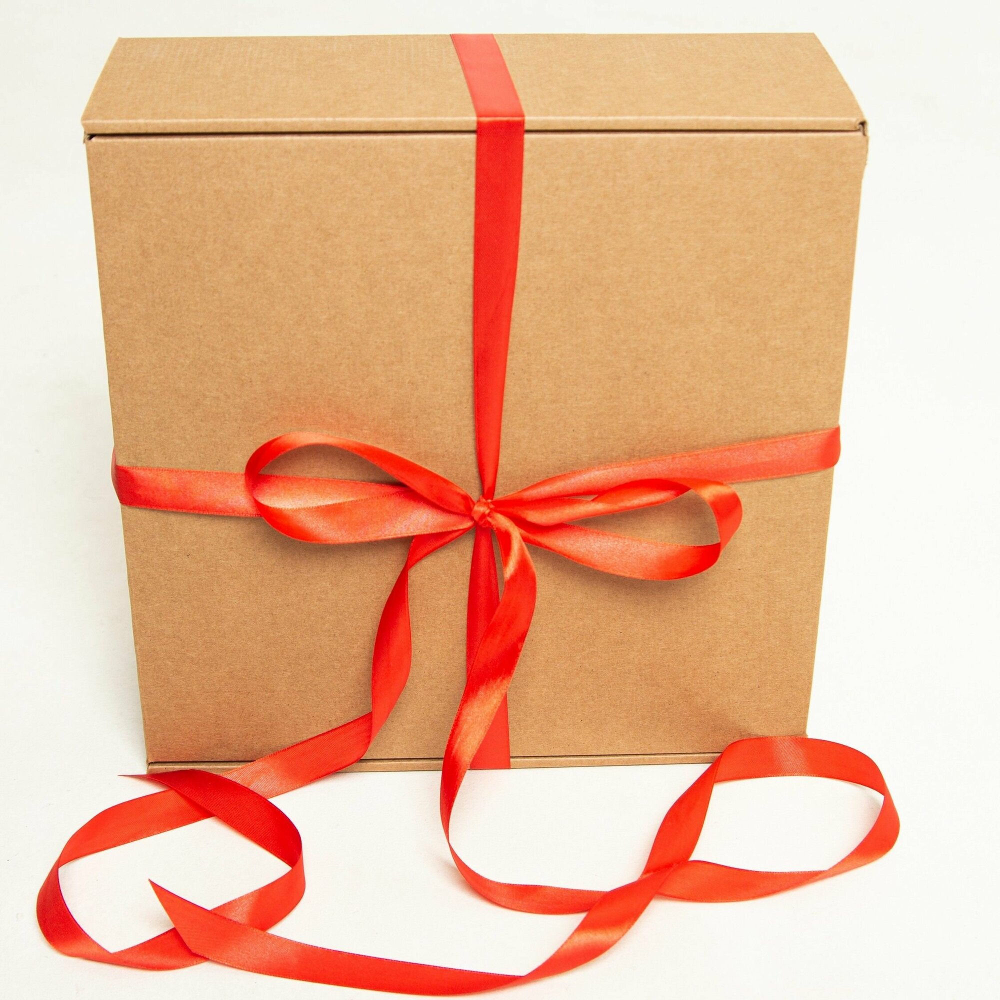 2 штуки - Огромная подарочная коробка GILEV 45х45х20см с красной лентой и наполнителем крафт