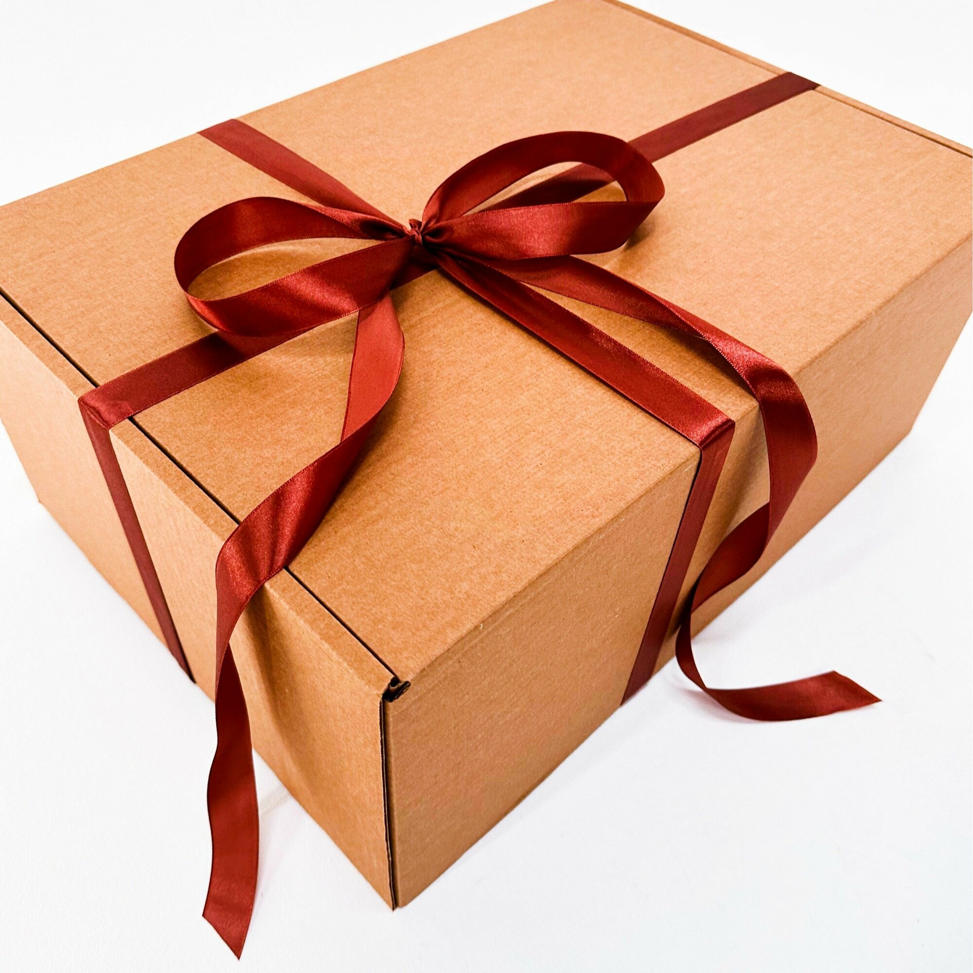 3 штуки - Подарочная коробка GILEV 32x22x10см с наполнителем и коричневой лентой