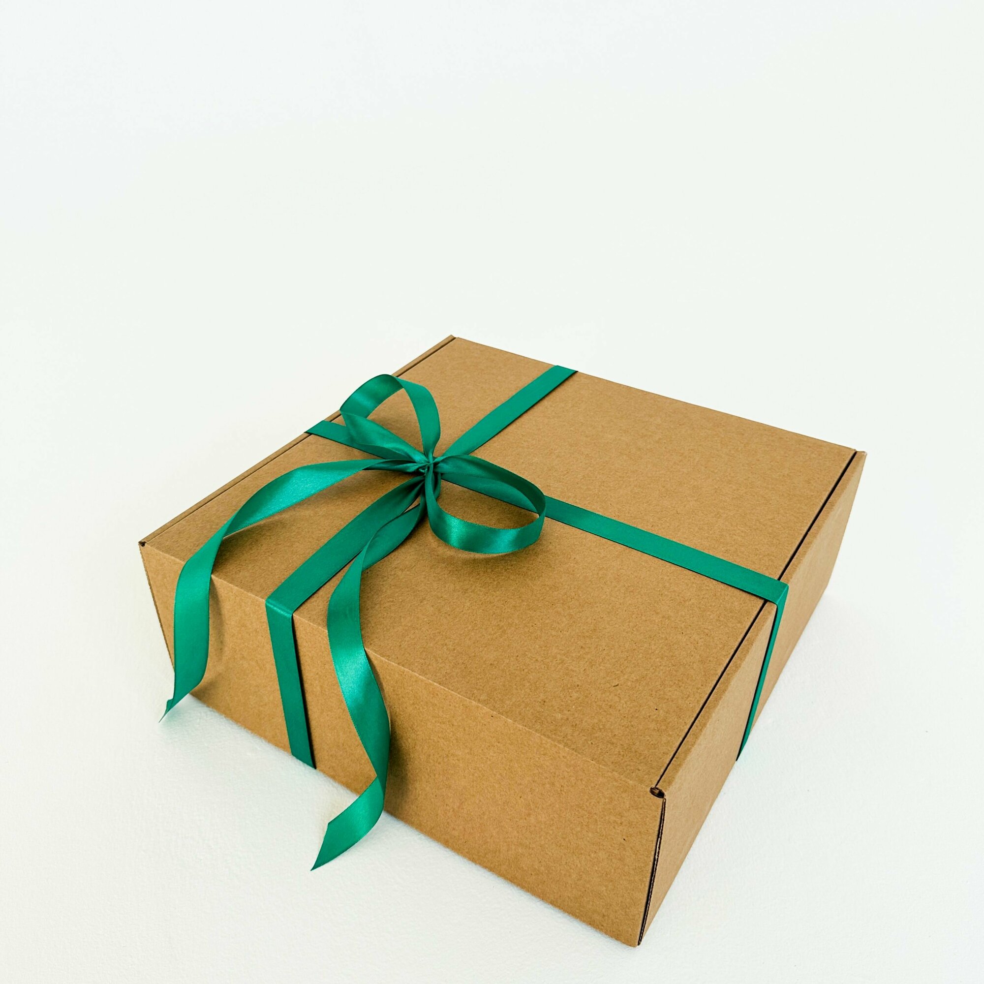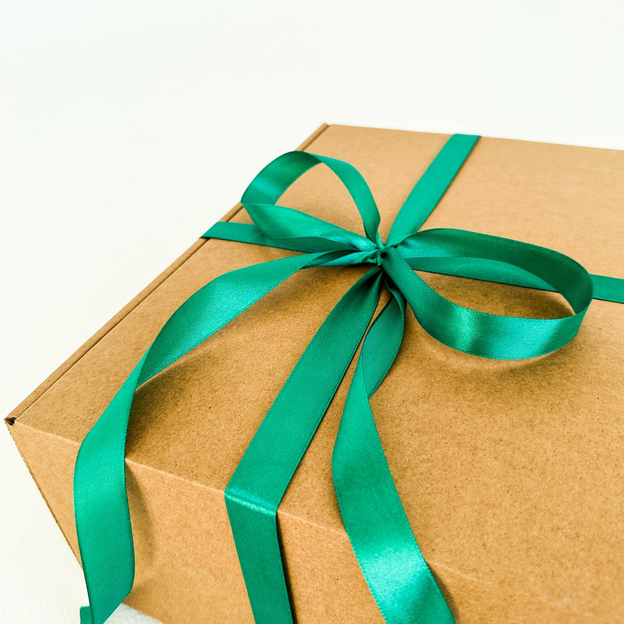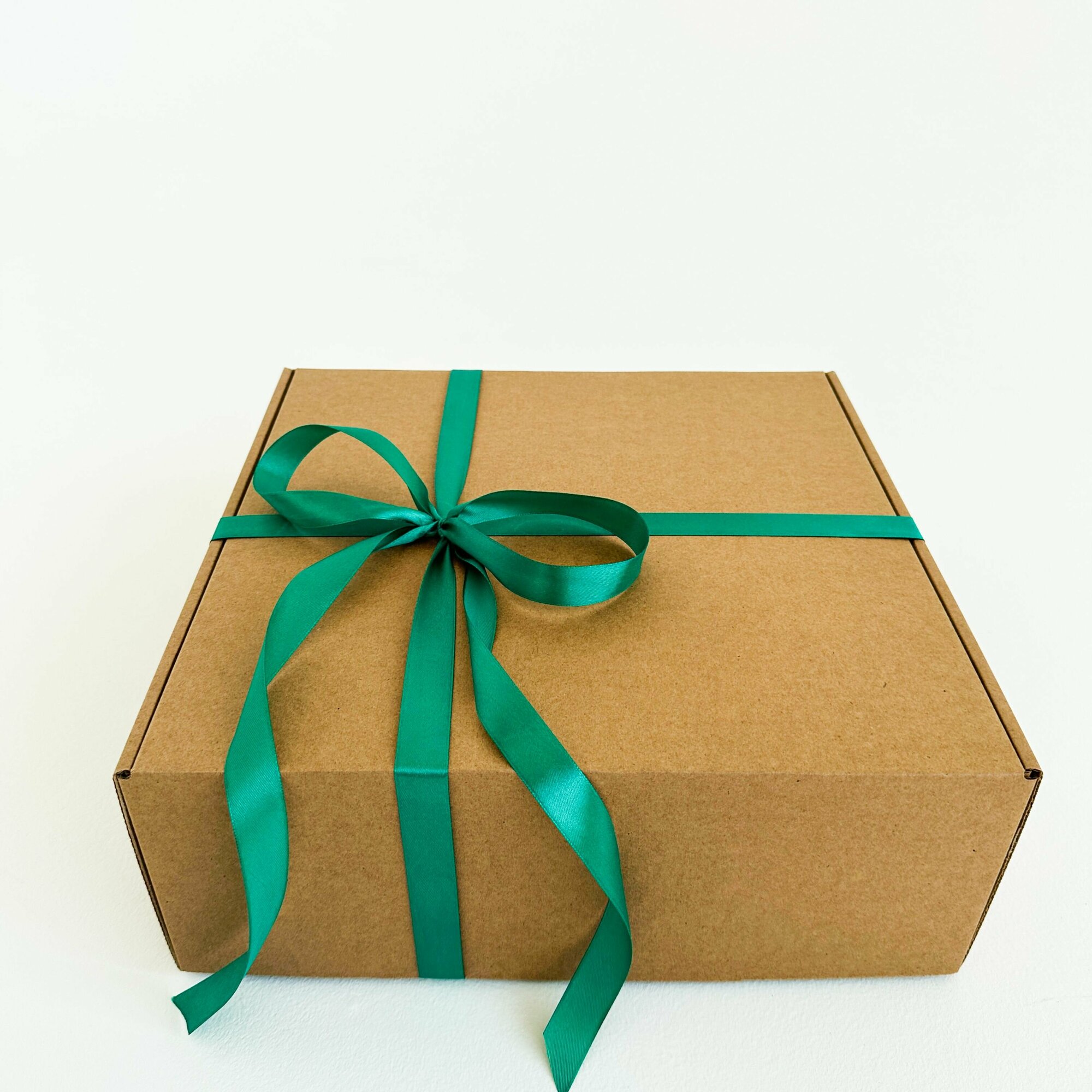 Огромная подарочная коробка GILEV 45х45х20см с зеленой лентой и наполнителем крафт