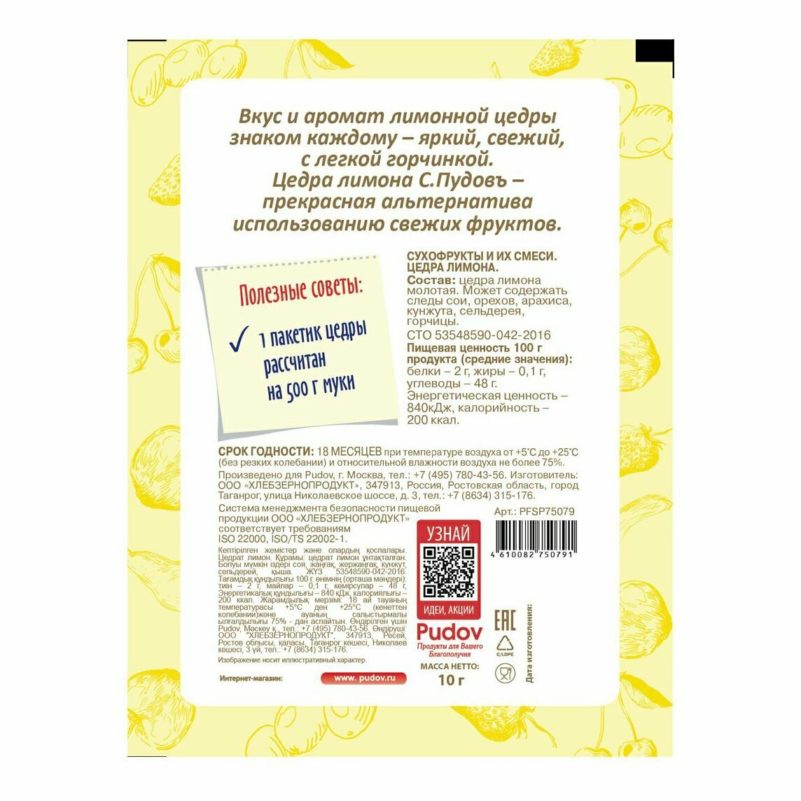 Цедра лимона молотая, С.Пудовъ, 10 г интересное: