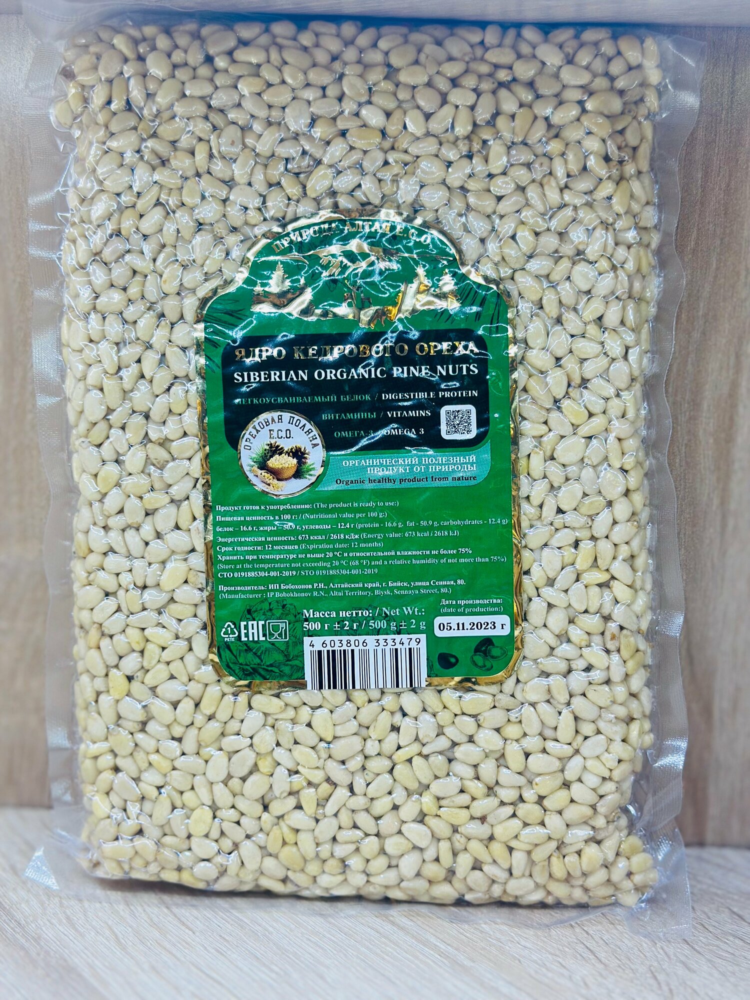 Кедровые орехи очищенные АЮ-дух леса, 500 г, вакуумная упаковка