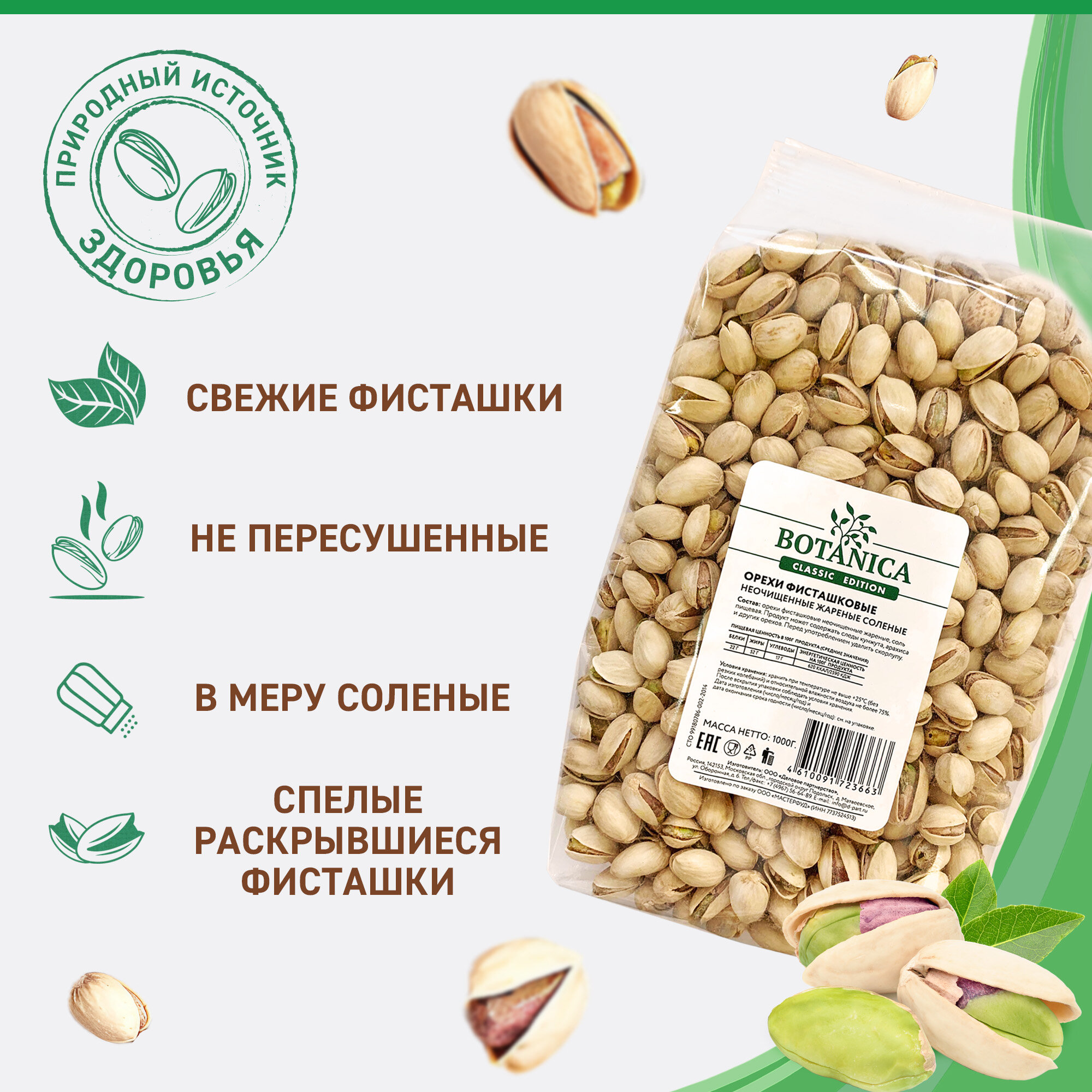 Фисташки соленые жареные Botanica, 1 кг