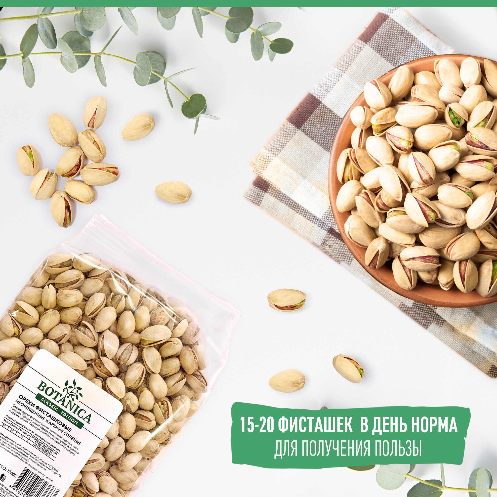 Фисташки соленые жареные Botanica, 1000 г интересное: