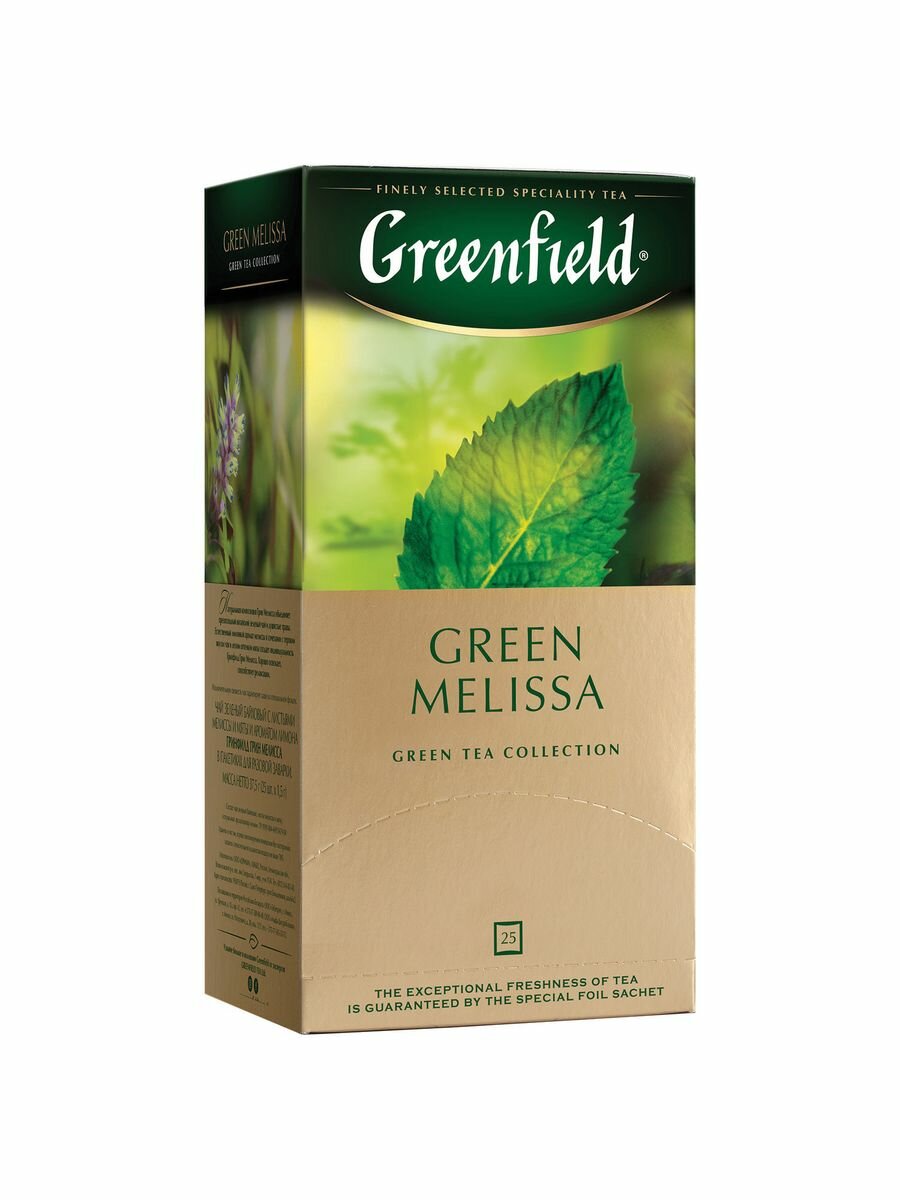 Чай GREENFIELD (Гринфилд) "Green Melissa", зеленый, 25 пакетиков в конвертах по 1,5 г