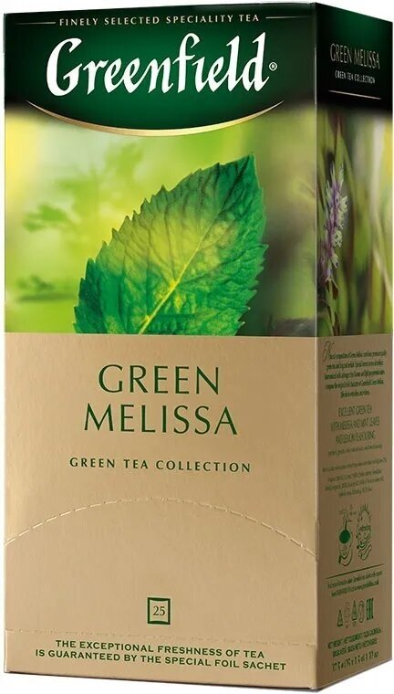 | Состав набора | Гринфилд Грин Мелисса чай зеленый с добавками пакетированный, 100 пакетиков по 1,5 г, в картонной упаковке |