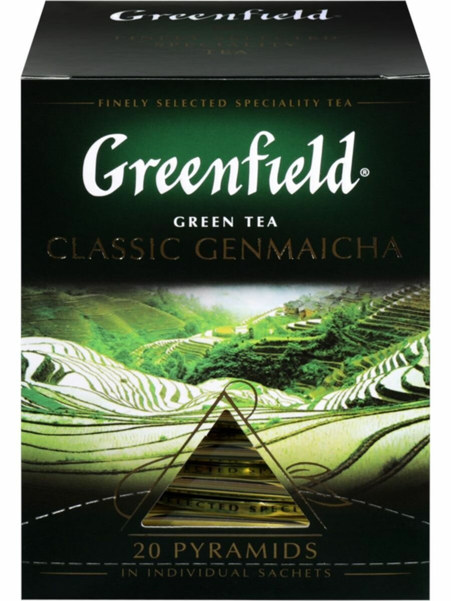 Greenfield чай зеленый пакетированный в пирамидках Classic Genmaicha 1,8г*20п интересное: