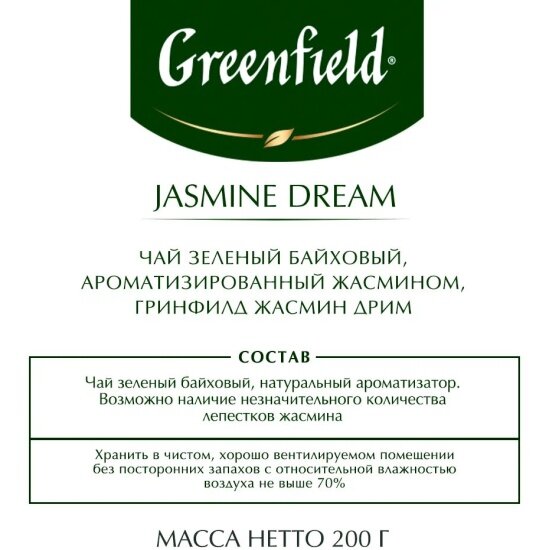 Чай Greenfield Jasmine Dream 200 г, листовой зеленый ароматизированный интересное: